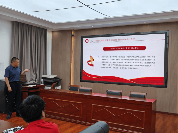 课上,,,,,刘卫民从“开展党纪学习教育的意义”“纪律处分条例重点内容的学习”以及“让遵规守纪成为自觉行动”三个方面来举行教学。。。。。。。