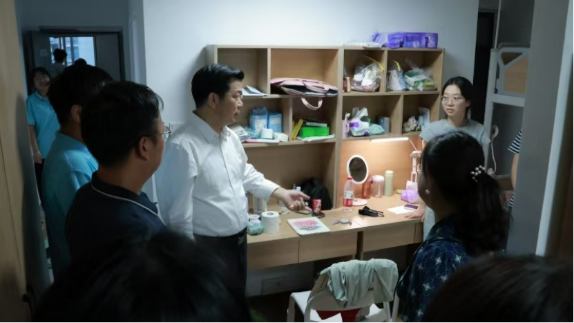 (通讯员 杜晶 李晓宇)迎新季,,,,,为相识2024级uu电玩官网研究生新生在校的住宿条件和生涯状态,,,,,给同砚们营造优异的校园生涯情形。。。。。。。。9月9日下昼六点,,,,,uu电玩官网院长曹胜亮、副院长金诗灿、向导员蔡明广及教学秘书王红梅前往研究生公寓(南区)走访探望了我院2024级硕士研究生新生。。。。。。。。