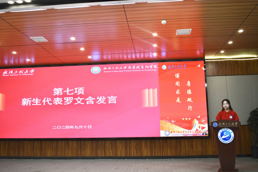 2024级硕士研究生罗文含作为新生代表讲话。。。。。。。“选择继续攻读研究生是一个主要决议,,,,,应珍惜机会,,,,,起劲实现人生目的,,,,,成为有理想、有本事、有继续的新时代青年。。。。。。。”她展望了研究生生涯远景,,,,,面向新篇章,,,,,她招呼同砚们要信马行马,,,,,争做马克思主义的坚定信仰者、有力践行者,,,,,起劲实现人生价值。。。。。。。