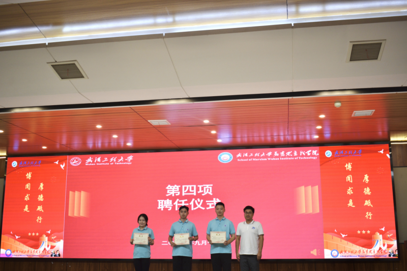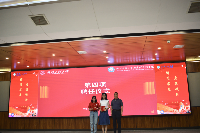 仪式上,,,,,学院书记刘卫民和院团委书记蔡明广划分为新生班主任和学生干部代表揭晓聘书。。。。。。。勉励他们要伴新生生长、助新天生才,,,,,为学院建设添砖加瓦。。。。。。。
