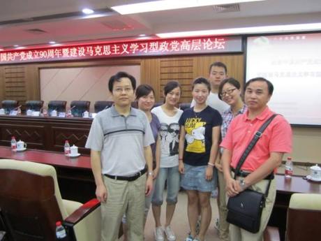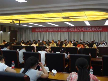 6月11日,,,,,“庆祝中国共产党建设90周年暨建设马克思主义学习型政党高层论坛”天下性学术聚会在华中师范大学逸夫国际聚会中心举行。。。。。。院长舒先林教授应邀向导西席和研究生代表加入了聚会。。。。。。此次论坛由中共湖北省委宣传部、湖北省社科联和华中师范大学团结举行。。。。。。