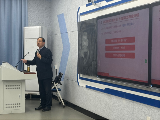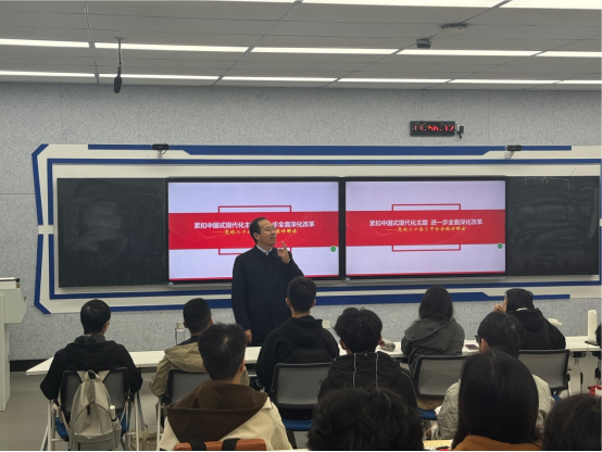 (通讯员 韩雪吟)为贯彻落实《教育部关于增强新时代高校“形势与政策”课建设的若干意见》精神,,,,,,推动党政向导干部上讲台讲“形势与政策”课,,,,,,11月18日下昼,,,,,,副校长马小龙走进课堂、走近学生、走进思政课,,,,,,为2023级人工智能学院本科生作了题为《紧扣中国式现代化主题、进一步周全深化刷新——党的二十届三中全会精神解读》的专题授课。。。。。
