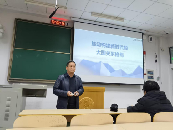 (通讯员 平英志)为贯彻落实《教育部关于增强新时代高校“形势与政策”课建设的若干意见》精神,,,,,,,推动党政向导干部上讲台讲“形势与政策”课,,,,,,,12月19日晚上,,,,,,,校党委常委、副校长、统战部部长吴云韬教授走进课堂,,,,,,,围绕新时代大国关系为2024级化学工程与工艺专业本科生作了题为《推动构建新时代的大国关系名堂》的专题授课。。。。。。