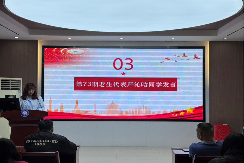 仪式第三项,,,,,,,,第73期党校优异学员严沁晗同砚讲话。。。。。。。。她指出,,,,,,,,青年应当从党的百年征程中罗致力量,,,,,,,,坚定理想信心,,,,,,,,传承红色基因,,,,,,,,严酷凭证党员标准要求自己,,,,,,,,施展先锋模范作用,,,,,,,,服务人民、孝顺国家。。。。。。。。她强调,,,,,,,,党校学习不但是理论提升的历程,,,,,,,,更是党性磨炼的熔炉。。。。。。。。全体学员必需以最严酷的标准恪守纪律,,,,,,,,将党校纪律内化为行动自觉。。。。。。。。最后,,,,,,,,她呼吁学员通过理论学习与实践磨炼,,,,,,,,筑牢信仰之基,,,,,,,,提升能力素养,,,,,,,,为祖国教育事业孝顺力量。。。。。。。。