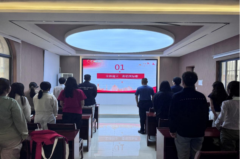 仪式第一项,,,,,,,,全体起立,,,,,,,,奏唱国际歌,,,,,,,,激昂的旋律中,,,,,,,,开班仪式正式拉开帷幕。。。。。。。。