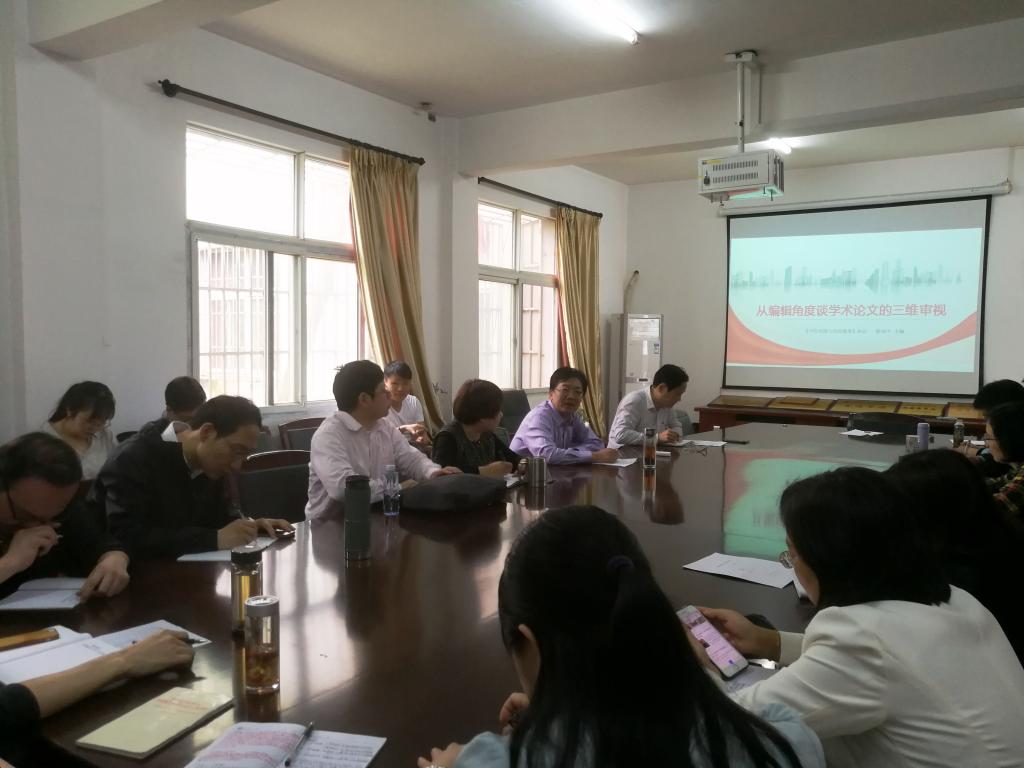 2018年4月12日下昼,,,,,《学校党建与头脑教育》杂志社主编、社长谢成宇教授应邀莅临学院“求是论坛”,,,,,作了题为“从编辑角度谈学术论文的三维审阅”的学术讲座。。。。。。。。讲座由院长舒先林教授主持,,,,,uu电玩官网全体西席及研究生加入了本次学术讲座运动。。。。。。。。