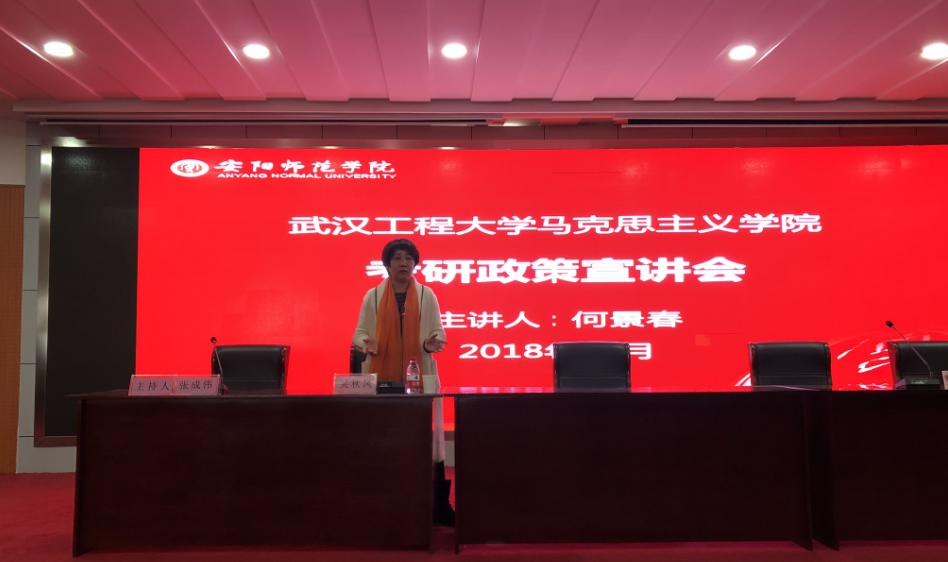 为了拓宽我院马克思主义理论专业硕士研究生招生渠道,,,,,提高我院马克思主义理论学科影响力和研究生生源质量,,,,,10月21至24日,,,,,院党委书记吴秋凤教授、副院长何景春教授、刘秋阳教授和颜欣博士一行赴河南许昌学院和安阳师范学院举行研究生招生调研和宣传。。。。。。