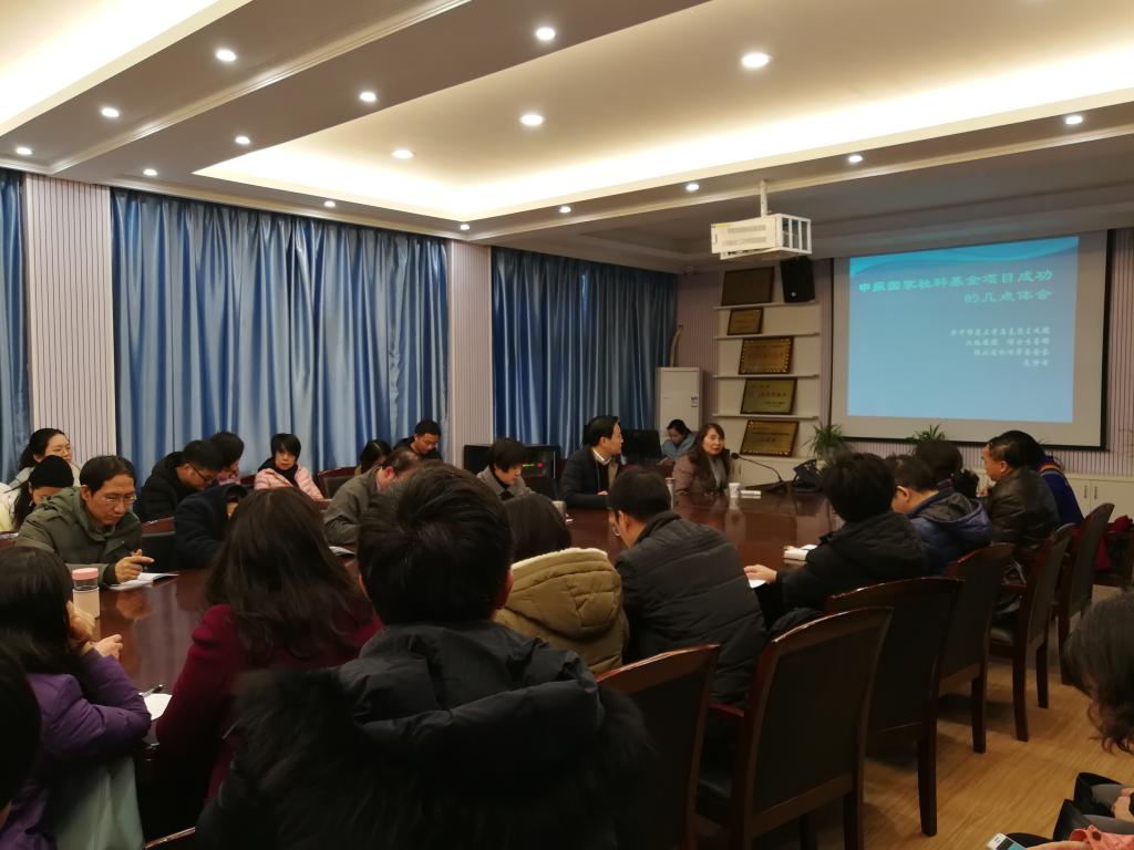 12月20日下昼,,,,,,,华中师范大学博士生导师、湖北省伦理学学会会长龙静云教授应邀莅临我院作了题为“申报国家社科基金项目的几点体会”的学术报告。。。。。。报告会由学院院长舒先林教授主持,,,,,,,学院西席和研究生加入了本次学术交流运动。。。。。。