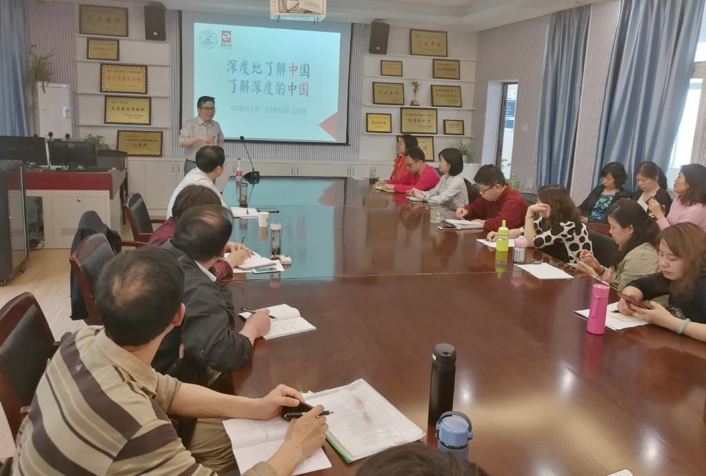 2019年4月18日下昼,,,,,华中科技大学uu电玩官网院长、博士生导师黄岭峻教授应邀莅临我院“求是论坛”,,,,,作了题为“大型思政选修课《深度中国》的深度解码”的专题报告。。。。。这是我校深入学习贯彻习近平总书记在学校思政课西席座谈会上的主要讲话精神,,,,,切实办妥思政课,,,,,进一步增强思政课课堂教学活力和魅力的系枚行动之一。。。。。报告会由uu电玩官网院长舒先林教授主持,,,,,学校相关部分的代表、uu电玩官网全体西席加入了本次学术报告会。。。。。