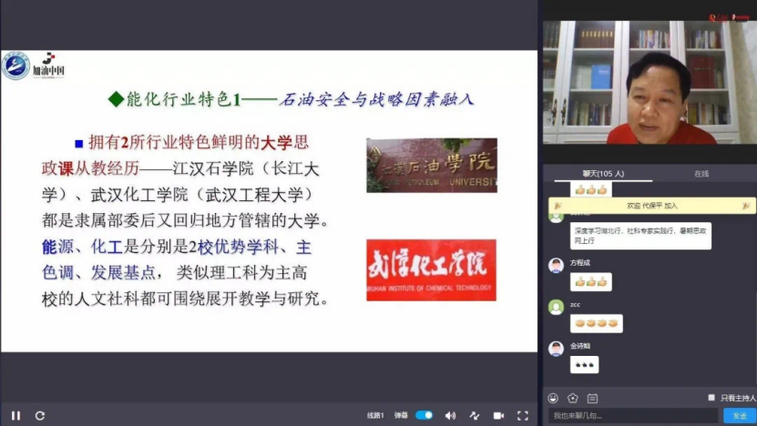 2020年7月4日晚,,,,,,,由长江大学uu电玩官网主理 ,,,,,,,人民网果真课协办,,,,,,,华中科技大学uu电玩官网、湖北经济学院uu电玩官网、uu电玩官网、湖北科技学院uu电玩官网、黄岭峻事情室及文华在线教育六家单位承办的湖北省第二届“新时代高校思政金课建设”钻研与交流周系列运动之湖北高校“中国系列”思政选修课第四次专题讲座以人民网果真课的方法乐成举行。。。。。。本次讲座的主讲人为uu电玩官网党委书记、国家精品视频果真课《谁来给中国“加油”——中国石油清静的逆境与出路》主讲人、“加油中国”课程认真人舒先林教授,,,,,,,讲座主题为“怎样将行业特色融入思政课???????——以武汉工程大学‘加油中国’为例”。。。。。。