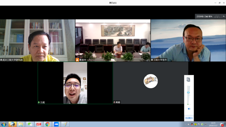 7月17日下昼,,,,,,,,湖北省委宣传部讲师团“理论热门面扑面”树模点建设专家组单位武汉工程大学团结鄂州市庙鹅岭股份经济合作社召开了一次云视频专题调研座谈会。。。。。。。树模点建设专家组组长、我院党委书记舒先林教授,,,,,,,,青年西席李齐博士,,,,,,,,王威博士以及18级硕士研究生黄橙,,,,,,,,以及庙鹅岭股份经济合作社党委书记、董事长王安平,,,,,,,,党委副书记、副董事长邵国顺和党委委员、董事邵超等加入了本次视频座谈会。。。。。。。座谈会由王威博士主持。。。。。。。