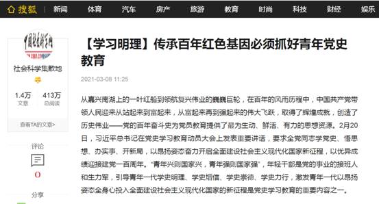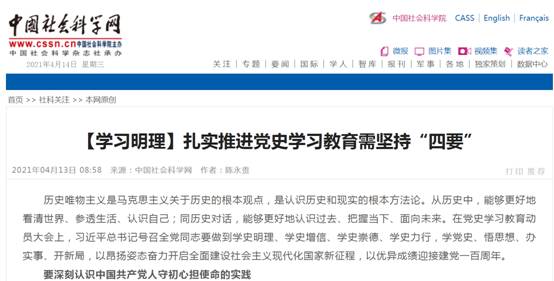 (通讯员 金诗灿)中共中央决议开展党史学习教育主题运动以来,,,,,,我校uu电玩官网迅速响应党中央招呼,,,,,,凭证学校安排,,,,,,起劲组织西席开展党史教育专题学习运动,,,,,,组织西席撰写文章,,,,,,深入研究党史及怎样开展党史教育,,,,,,在《中国社会科学网》等多家主流网站揭晓文章。。。。。。操菊华教授撰写了《传承百年红色基因必需抓好青年党史教育》(http://ex.cssn.cn/zx/bwyc/202103/t20210308_5316182.shtml),,,,,,陈永贵博士撰写了《扎实推进党史学习教育需坚持“四要”》(http://ex.cssn.cn/zx/bwyc/202104/t20210413_5325923.shtml)。。。。。。文章揭晓后,,,,,,被搜狐、网易、中国历史研究网及今日头条等客户端转发,,,,,,爆发了起劲影响。。。。。。