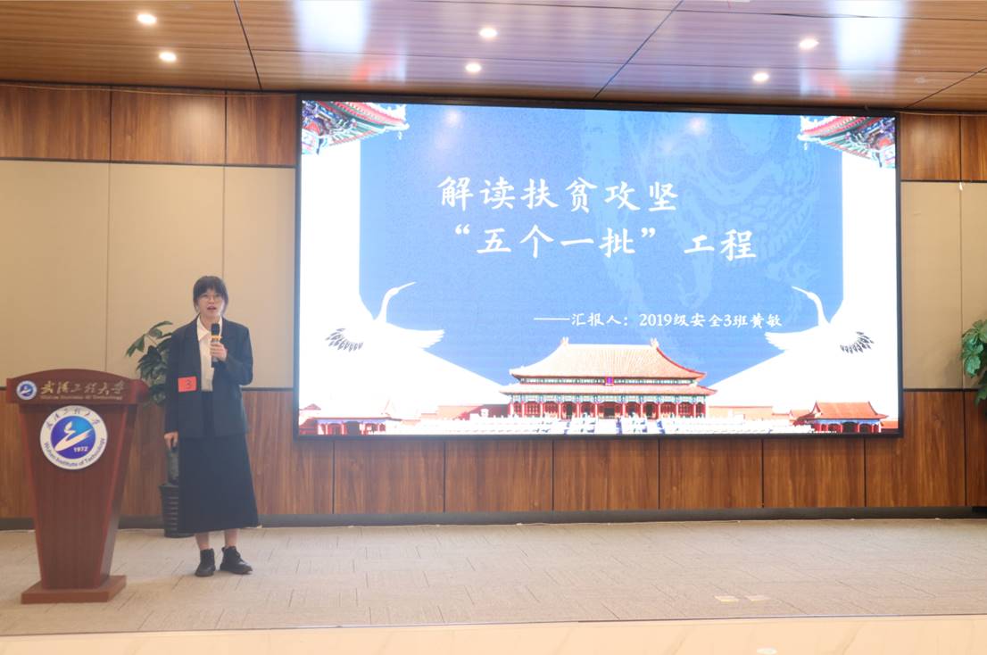 获得二等奖的第三组选手是来自资源与清静工程学院的黄敏,,,,,,她演讲的主题是“解读脱贫攻坚“五个一批”工程”。。。。。。。她指出,,,,,,五个一批工程基本涵盖了种种贫困生齿,,,,,,是党关于贫困生齿绝不落下一户的坚定允许,,,,,,是党在实践中总结出来的生动履历。。。。。。。