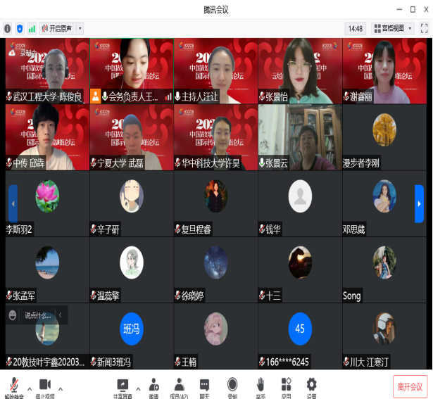 5月14日下昼,,,,,,,,彭颜红博士在聚会上作了题为《论中华体育文化国际撒播的提升艺术的报告》,,,,,,,,受到与会师生充分好评 。。。。。。同时,,,,,,,,彭颜红博士指导的三位硕士研究生陈俊良、王钰蕾、任新阳都提交了论文 。。。。。。且经由强烈竞争、层层选拔,,,,,,,,陈俊良同砚的《新媒体视域下马克思主义公共化撒播的形式立异》、王钰蕾同砚的《新时代高校头脑政治教育理论课要讲好抗疫故事》两篇论文入选本次国际聚会,,,,,,,,并获准在聚会上讲话,,,,,,,,获得本论坛专家的一定与好评 。。。。。。