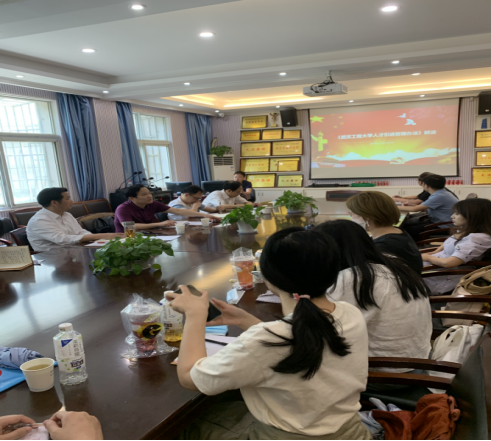 副院长金诗灿对《武汉工程大学人才引进管理步伐》举行了周全解读,,,,,,,,并就新进西席聘期使命与审核指标举行了指导与交流。。。。。。。。