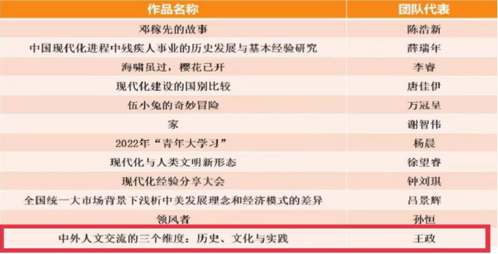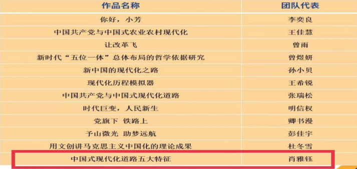 本次角逐运动旨在指导大学生起劲运用马克思态度、看法和要领,,,,,,熟悉中国,,,,,,熟悉天下,,,,,,并在观天下的实践中拓宽视野、增添知识。。。。。。。。此次共有73支参赛队进入决赛,,,,,,各参赛步队通过团队分工协作,,,,,,通过模拟访谈、播放视频、情景模拟、采访等多种形式,,,,,,生动形象的展示各自的作品。。。。。。。。uu电玩官网的谢俊副教授和余伟斌副教授指导的由马院研究生肖雅钰、钟佩、郭铭惠、王钰蕾、任新阳组成的团队的微视频作品——《中国式现代化蹊径五大特征》,,,,,,通过比照中西方现代化的蹊径历程,,,,,,突显了中国在现代化蹊径中差别于其他国家的五大特征,,,,,,彰显了中国特色社会主义制度的优越性。。。。。。。。该作品在强烈的较量中获得二等奖;;;;;陈永贵博士指导的王政团队的论文作品——《中外人文交流的三个维度:历史、文化与实践》,,,,,,从历史、文化与实践三个维度叙述了中外人文交流的历史演进、文化特征与实践效果,,,,,,有力验证了习近平人文交流叙述对引领新时代中外人文交流事情和推感人类运气配合体建设具有重大意义。。。。。。。。该作品最终获得三等奖。。。。。。。。