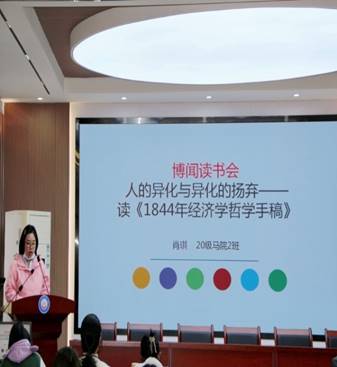 (通讯员:范鑫)2023年3月9日下昼16点,,,,,,,,我院第109期“博闻念书会”在uu电玩官网112多功效厅召开。。。。。。本次聚会以“人的异化与异化的扬弃——读《1844年经济学哲学手稿》”为主题,,,,,,,,围绕人的异化的形成缘故原由、人的异化的体现、扬弃异化的主要途径和异化理论的意义等四个方面睁开讨论。。。。。。本次念书会由李齐先生主持,,,,,,,,uu电玩官网全体在校研究生加入。。。。。。本次念书会的九位主讲人为马院硕士研究生肖琪、尚富阳、周雪、李梦依、朱梦圆、张蕊、陈典华、李晨昂、王明振。。。。。。