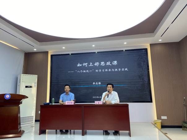 (通讯员:平英志)为进一步提高我院西席教学能力与水平,,,,,,,,2023年6月8日上午,,,,,,,,中国政法大学uu电玩官网教授、博士生导师李志强应邀做客我院第67期“求是论坛”,,,,,,,,作了题为“怎样上好思政课——‘八个相统一’的学习体会与教学实践”的学术报告。。。。。此次学术报告由uu电玩官网院长曹胜亮主持,,,,,,,,全院思政课西席及学生代表聆听了报告。。。。。