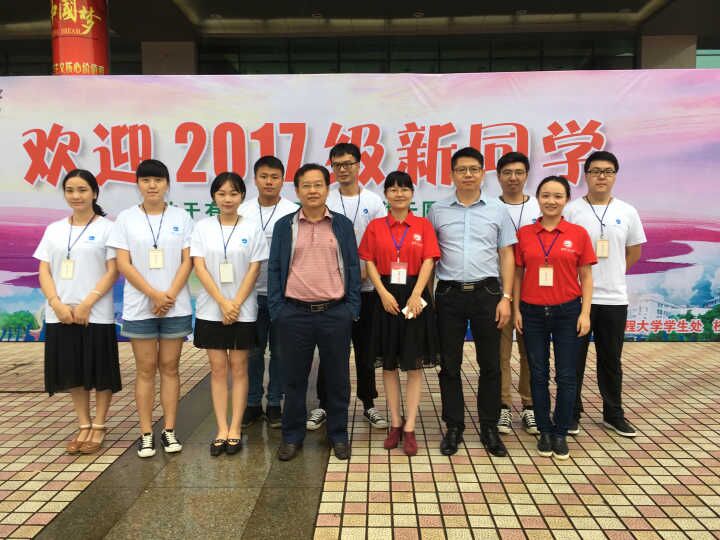 9月6日早晨,,,,,,,,在向导员张雪姣先生的指导下,,,,,,,,研究生会干部在大礼堂前有条不紊地睁开了迎新事情,,,,,,,,为到校新生打点相关入学手续。。。。。。。学校党委书记程幼金、校长王存文等校向导及职能部分向导一行来到马克思主义迎新现场检查迎新事情、探望新生。。。。。。。我院院向导亲临现场指导事情,,,,,,,,并与前来报到的新同砚举行了亲热的交流。。。。。。。