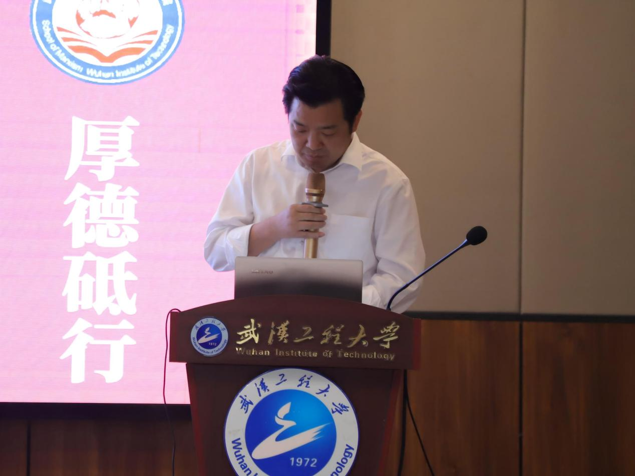 导师代表余伟斌副教授以“矛盾是普遍保存的”为切入点,,,,,,勉励新生在解决难题中实现生长。。。。。。。。他提出三点期望:一是举好旌旗,,,,,,筑牢理论基本,,,,,,坚持“学马、讲马、信马、用马”,,,,,,将论文写在祖国大地上;;;;;二是统筹时间,,,,,,科学妄想三年学业,,,,,,通过精读文献、强化逻辑训练提升学术能力;;;;;三是诚信为本,,,,,,恪守学术品德,,,,,,做“忠实、严谨、有风骨的研究生”。。。。。。。。
